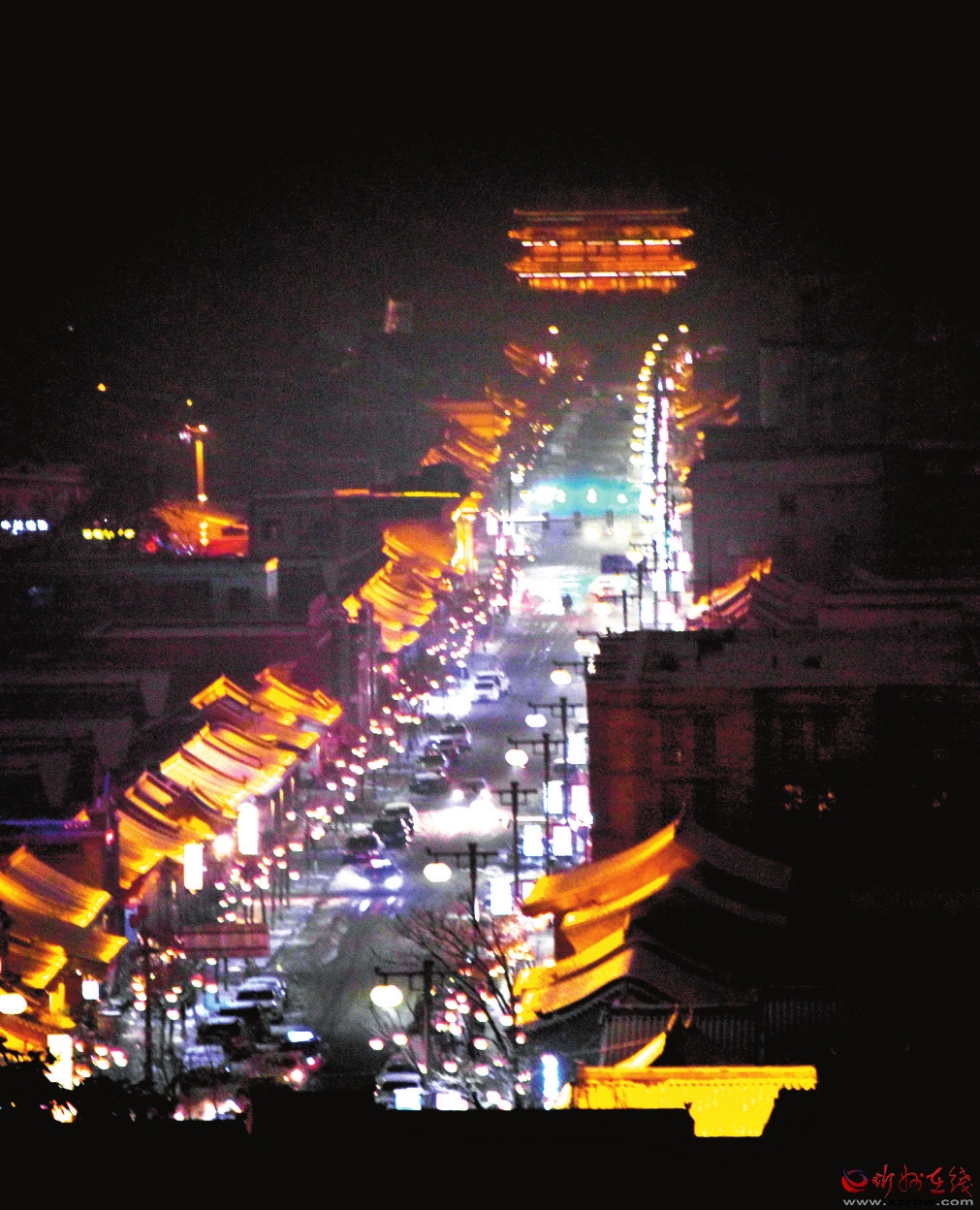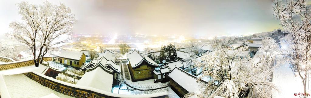 3月19日,我市普降瑞雪,雪后的jrs直播365_日博官网365.tv_365外勤官网下载古城银装素裹,古建民居和灯火璀璨的夜景相互辉映,宛如画卷。(赵晨善 摄)