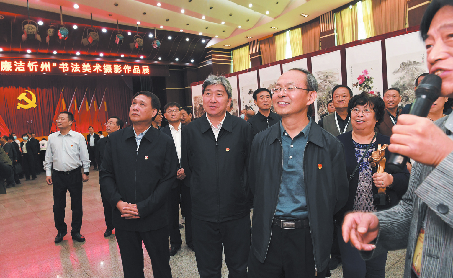 开展仪式结束后,我市书法、美术名家还挥毫泼墨现场创作,与广大书法美术爱好者进行了笔会交流活动。这次书法美术摄影展在市委党校首展后,还将深入14个县(市、区)及五台山风景名胜区进行巡展。