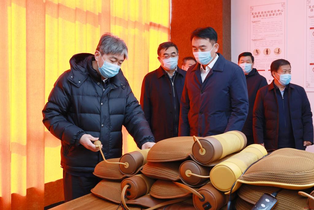 签约仪式结束后,与会人员现场观摩了“投产一批”重点项目五台县名优特展示中心。该中心集五台县名优特产品展示、网红打卡地、睡觉村好睡眠体验馆、电商直播基地、辨体质本草杂粮调理中心、农民自产自销交易平台、第一书记之家七大功能于一处,在视觉效果上突出观赏功能,为网红打卡宣传提供平台和素材,同时兼具超市功能,顾客在参观体验的同时即可购买产品,既能带动农民创收,又能为城市居民带来质优价廉的农产消费品,为农产品销售提供一处高效交易平台。